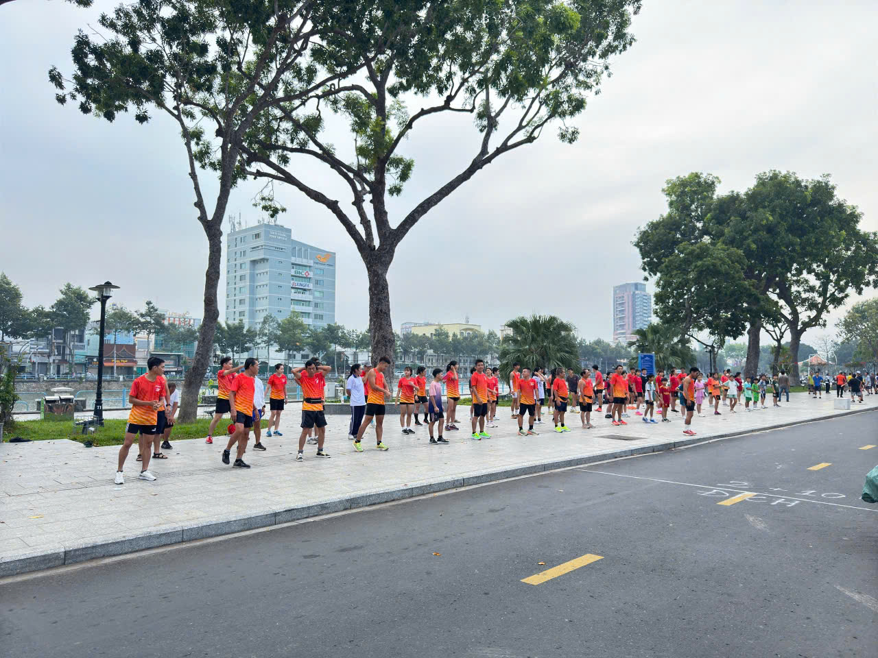 Hình ảnh câu lạc bộ Tien Giang Runner Club tập luyện tại Công viên Tết Mậu Thân